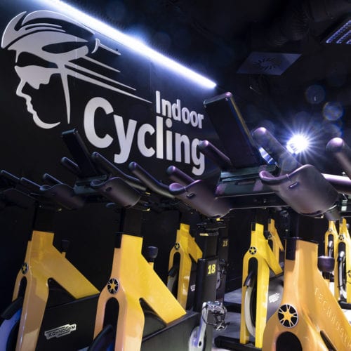 La salle d’Indoor Cycling est une salle conçue spécialement pour le vélo d’intérieur et équipée d’une vingtaine de vélos.